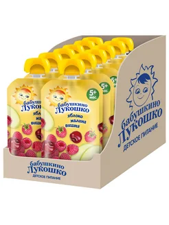 Пюре яблоко+малина+вишня, 5+мес, 90гр, 12 шт