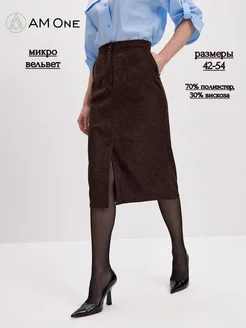 Юбка вельветовая карандаш прямая коричневая шоколад