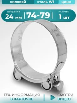 Хомут силовой одноболтовый шарнирный цинк W1 74-79мм 1шт