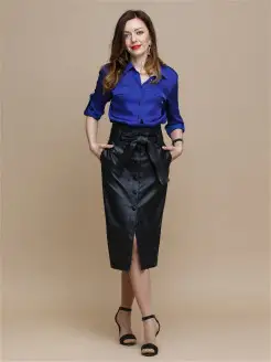 Юбка Женская кожаная карандаш облегающая с завышенной талией