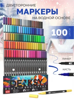 Акварельные маркеры двусторонние с кистью, 100 цветов