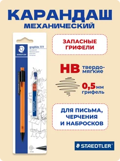 Карандаш механический с запасными грифелями Mars, HB 0.5 мм