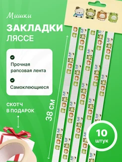 Закладки-ляссе самоклеящиеся А4 для тетрадей и книг Мишки