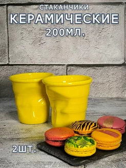 Мятые стаканы керамические для кофе чая 200 мл 2шт