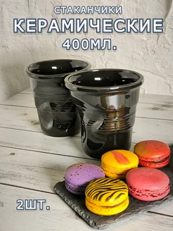 Мятые стаканы керамические для кофе чая 400 мл 2 шт