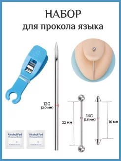 Набор для пирсинга и прокола языка 16 мм и 22 мм