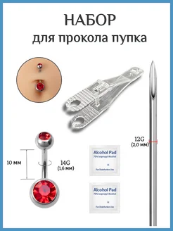 Набор для пирсинга и прокола пупка 10 мм (камни)