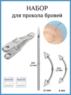 Набор для пирсинга и прокола бровей 8, 10 мм