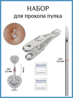 Набор для пирсинга и прокола пупка 10 мм (сердце)