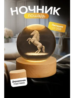 Ночник детский светодиодный стеклянный шар светильник Лошадь