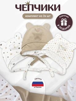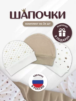 Чепчики шапочки для новорожденного набор 3шт