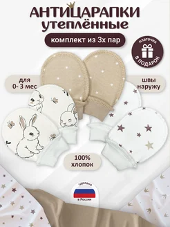 Комплект утепленных антицарапок для новорожденных 3 шт