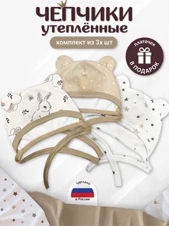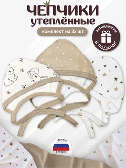 Чепчики утепленные для новорожденного набор 3шт