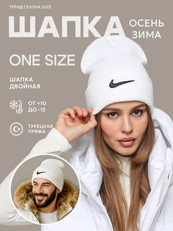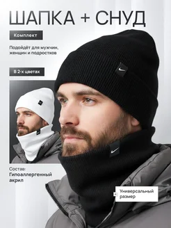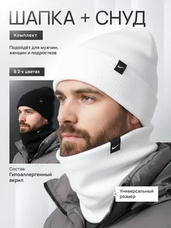 Шапка бини со снуд комплект зимняя вязаная двойная
