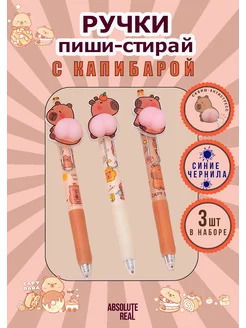 Набор синих гелевых ручек 3 шт пиши-стирай капибара сквиш