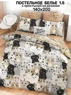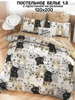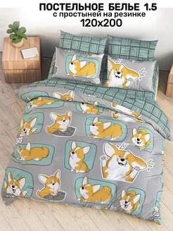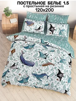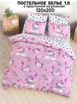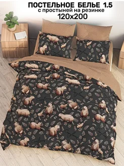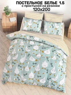 Постельное белье 1.5 спальное с простыней на резинке 120х200
