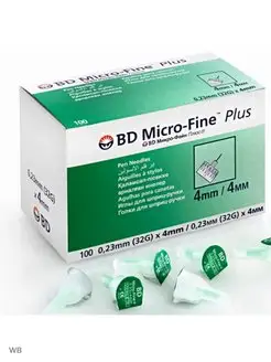 Иглы для шприц-ручек Микрофайн Плюс, 4 мм, 32G, 100 штук