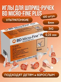 Иглы для шприц-ручек Микрофайн Плюс, 6 мм, 31G, 100 штук