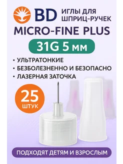 Иглы для шприц-ручек Микрофайн Плюс, 5 мм, 31G, 25 штук