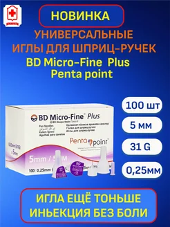 Иглы для шприц-ручек Микрофайн Плюс, 5 мм, 31G, 100 штук