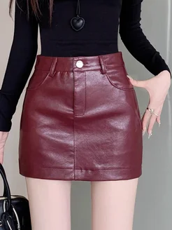 Юбка лаковая экокожа короткая мини бордовая y2k