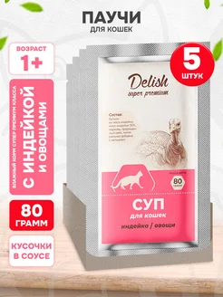 Корм влажный Super Premium кошек индейка овощи суп 80г 5шт
