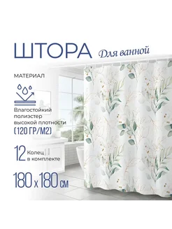 Штора для ванной комнаты тканевая 180х180 см зеленая