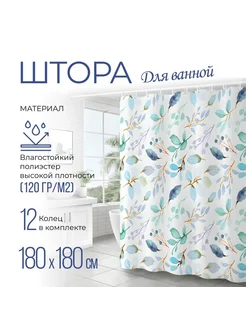 Штора для ванной комнаты тканевая 180х180 см голубая