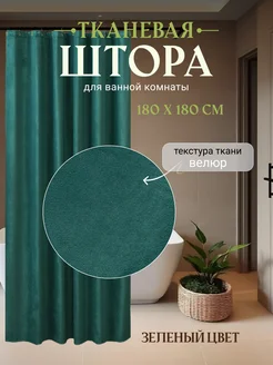 Штора для ванной комнаты бархатная 180х180 см зеленая
