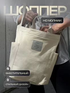 Сумка шоппер женская через плечо тканевая спортивная молния