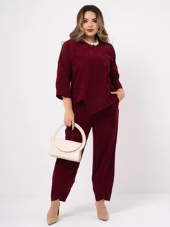 Вельветовый костюм брючный большие размеры бохо оверсайз