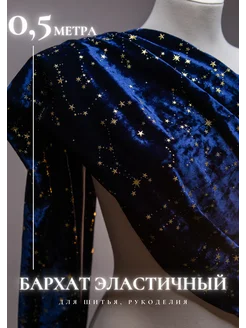 Эластичный бархат для рукоделия со звездами синий 0.5м