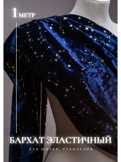Эластичный бархат для рукоделия со звездами синий 1м