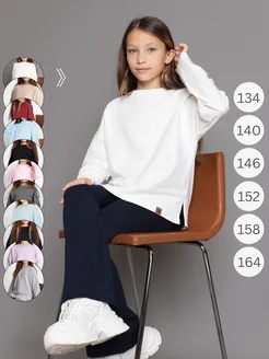 Брюки клеш трикотажные школьные обтягивающие на резинке
