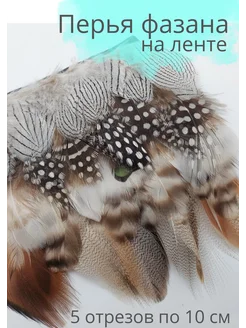 Перья фазана цесарки павлина на ленте