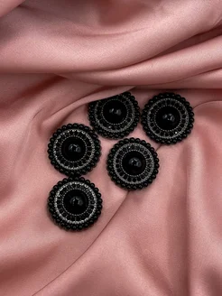 Пуговицы черные с жемчугом 24 мм, 5 штук