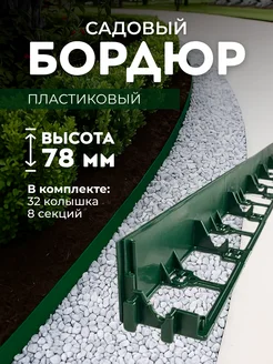 Садовый пластиковый бордюр - 8 метров, высота 78 мм. Зелёный