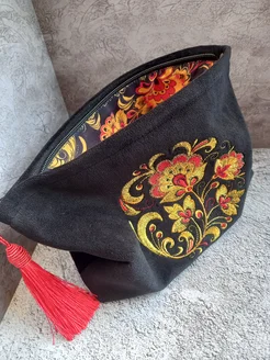 Косметичка большая женская с вышивкой Хохлома