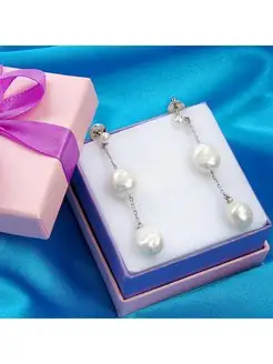 Серьги серебряные длинные с жемчугом барокко