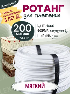 Ротанг полимерный для плетения, Мягкий 200м, Белый
