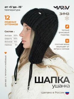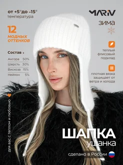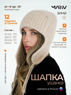 Шапка ушанка вязаная на флисе