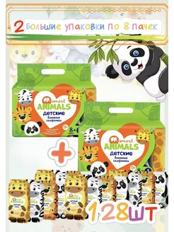 Влажные салфетки детские Smart animals 16 уп по 8 шт