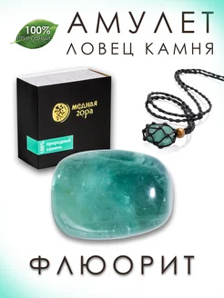 Флюорит натуральный на черном шнурке, амулет Ловец Камня