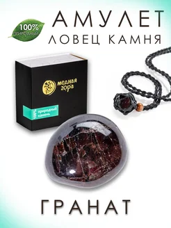 Гранат натуральный на черном шнурке, амулет Ловец Камня