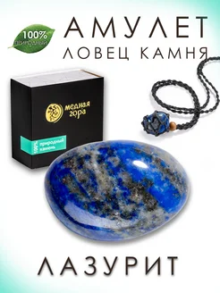 Лазурит натуральный на черном шнурке, амулет Ловец Камня