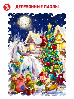 Деревянный пазл Новогодний подарок лошади 170 деталей