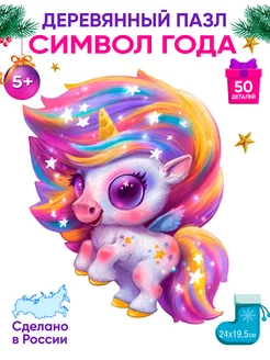 Деревянный пазл Новогодний Единорог