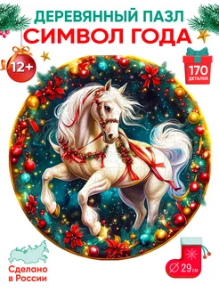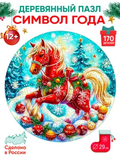 Деревянный пазл Новогодняя лошадь 170 деталей
