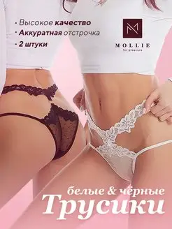 Трусы слипы женские кружевные набор 2 шт черные+белые