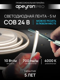 Светодиодная лента 24В Free Cut, 4000К, Cob 5м